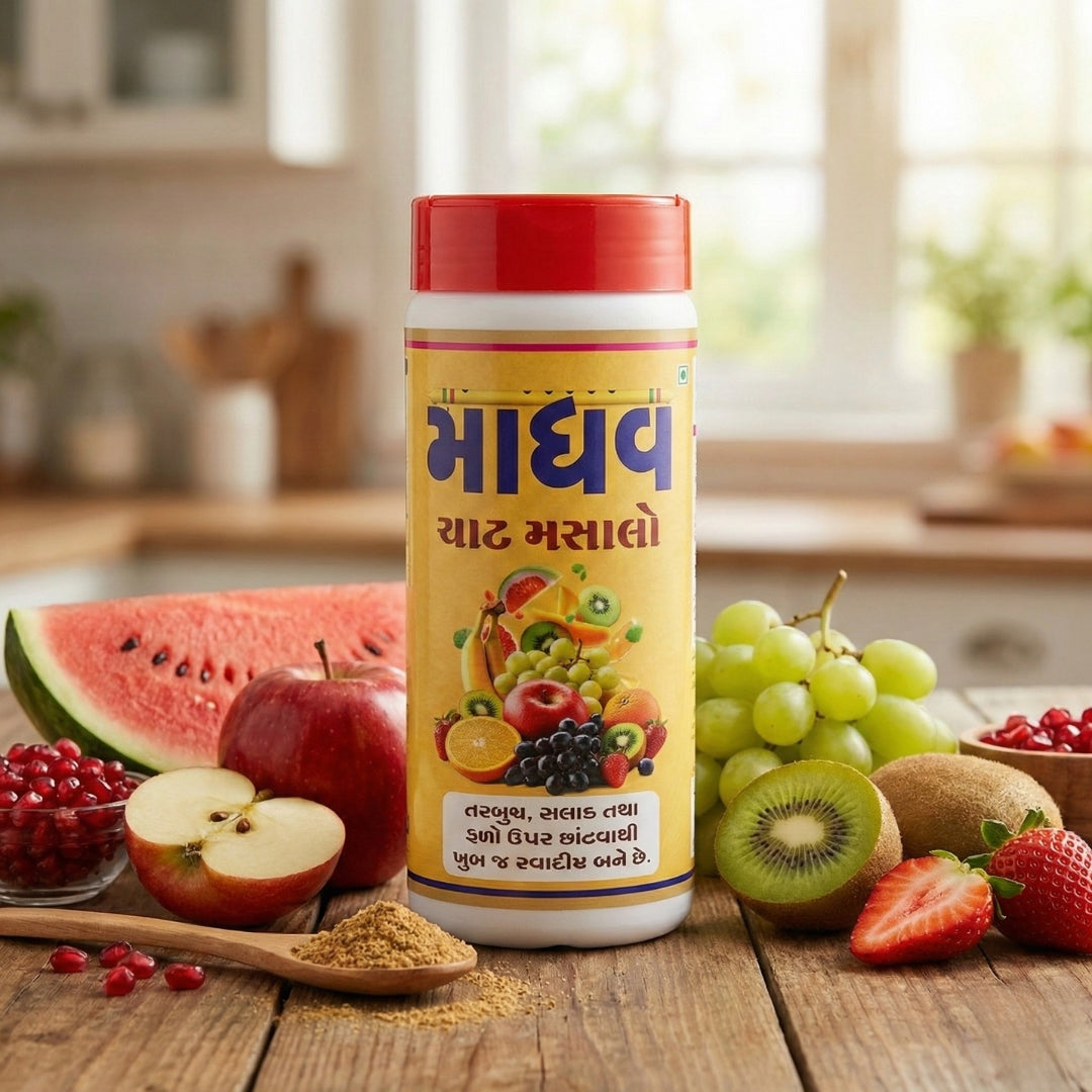 Madhav Chaat Masalo is a flavorful Indian chaat masala made from carefully selected spices. It adds a tangy, spicy taste to fruits, salads, snacks, and chaat dishes, enhancing everyday meals with a classic Indian flavor.